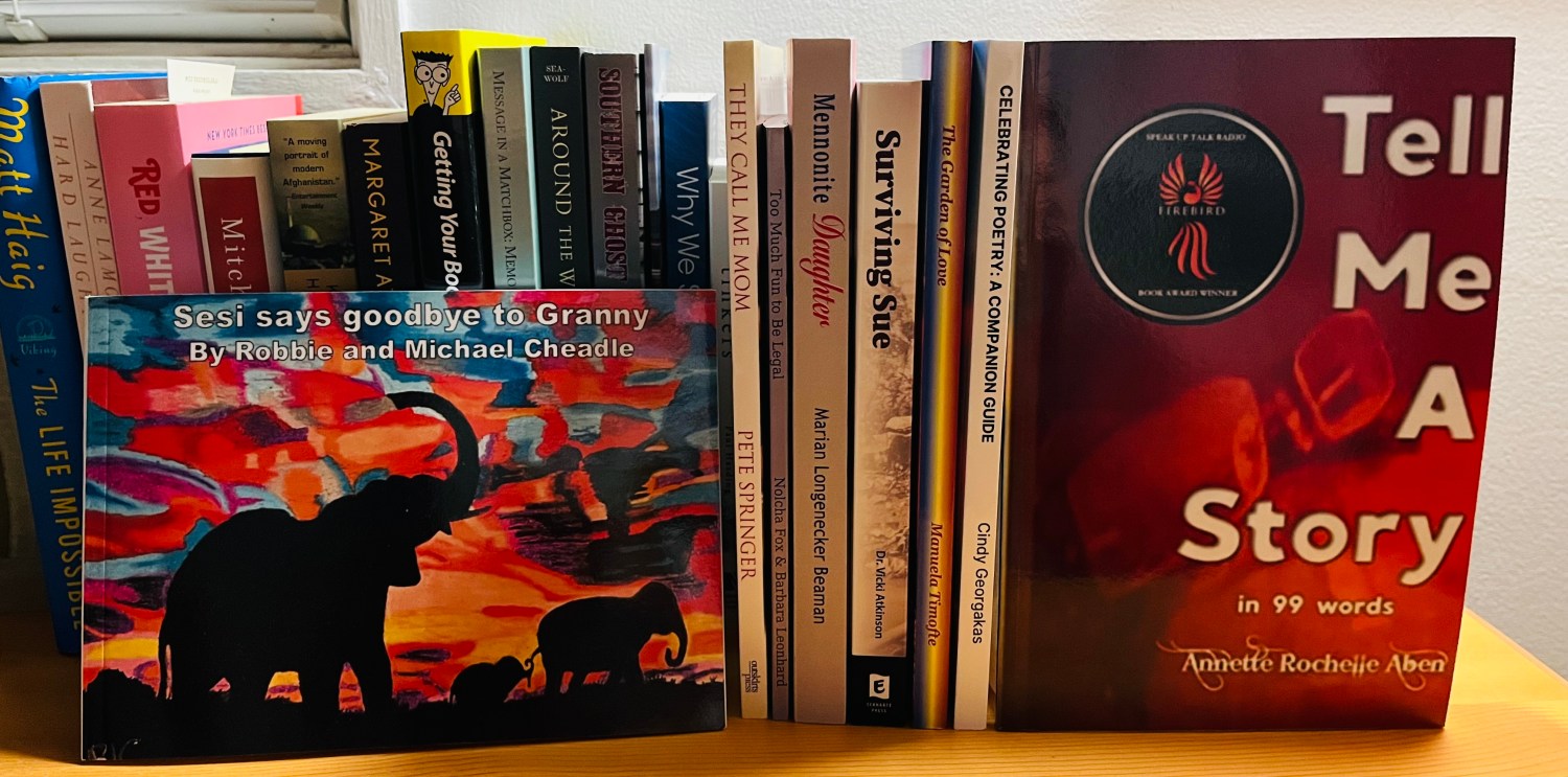 I’m sharing more (way) overdue reviews, and a wonderful line-up of books on my bookcase are waiting to be read. So, more reviews will come in January. Here’s the line-up: Sesi Says Goodbye to Granny, They Call Me Mom, Too Much Fun to be Legal, Mennonite Daughter, Surviving Sue, The Garden of Love, Celebrating Poetry: A Companion Guide, and Tell Me a Story in 99 words. So you can see, I have an abundance of great reading ahead of me. I apologize for not reading more this year, but life just got in the way.