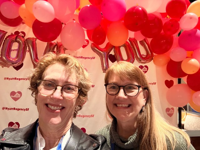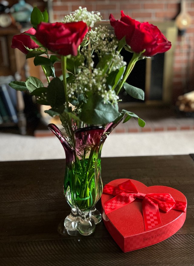 I had another rich experience for my second time attending. The conference is an excellent way to meet new people while seeing familiar faces. It’s all about networking. A couple highlights were chatting with Michael Larsen (co-founder who is 92 years old) and Dr. Andy Jones. I took more photos of scenes, but I enjoyed meeting Norelyn, Valerie, Diana, Arlene, Jennifer, and so many more wonderful people, and Teri and I snuck in a selfie by the Valentine booth. The weekend was about spreading love! The two keynote speakers were Jack El-Hai, highlighting his work on the Nuremberg film adaptation, and Raina Telgemeier, a graphic novelist known for Smile, Sisters, and Guts. Both were excellent! The icing on the cake was finding gorgeous red roses and Sees from hubby for Valentine’s Day when we got home!