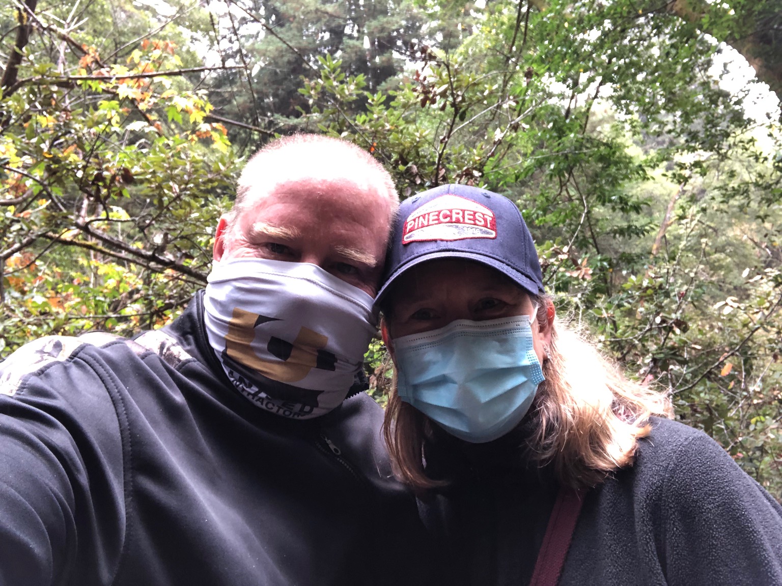 Sherry serves lasagna while Dave dishes up salad on this Saturday evening. Raindrops gently dance on the roof.