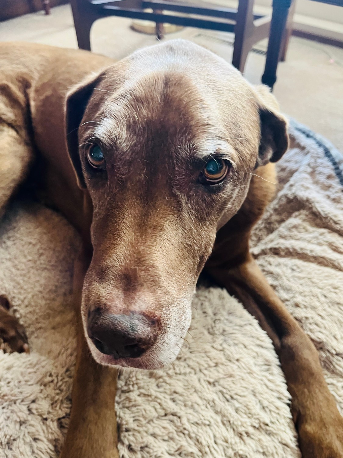 But the silver lining is that we were so lucky to have had Copper in our family for almost 13 years. As time passes, the good memories will bring warmth and comfort to our souls. Right now, the grieving is raw. Honestly, I’m an emotional mess. We’ll miss his energy, his pleading for belly rubs, his slobbery kisses and cuddles and snuggles, his unconditional love. Those amber eyes. Sigh. He loved Dad, and his sister and brother more than words can express. But I was his mom, and he followed me everywhere, watching me like a hawk if I walked out of the room. I will miss my shadow. I’m wearing his dog tag as a necklace. I don’t care what people think. He was our family and we miss him so much.💔