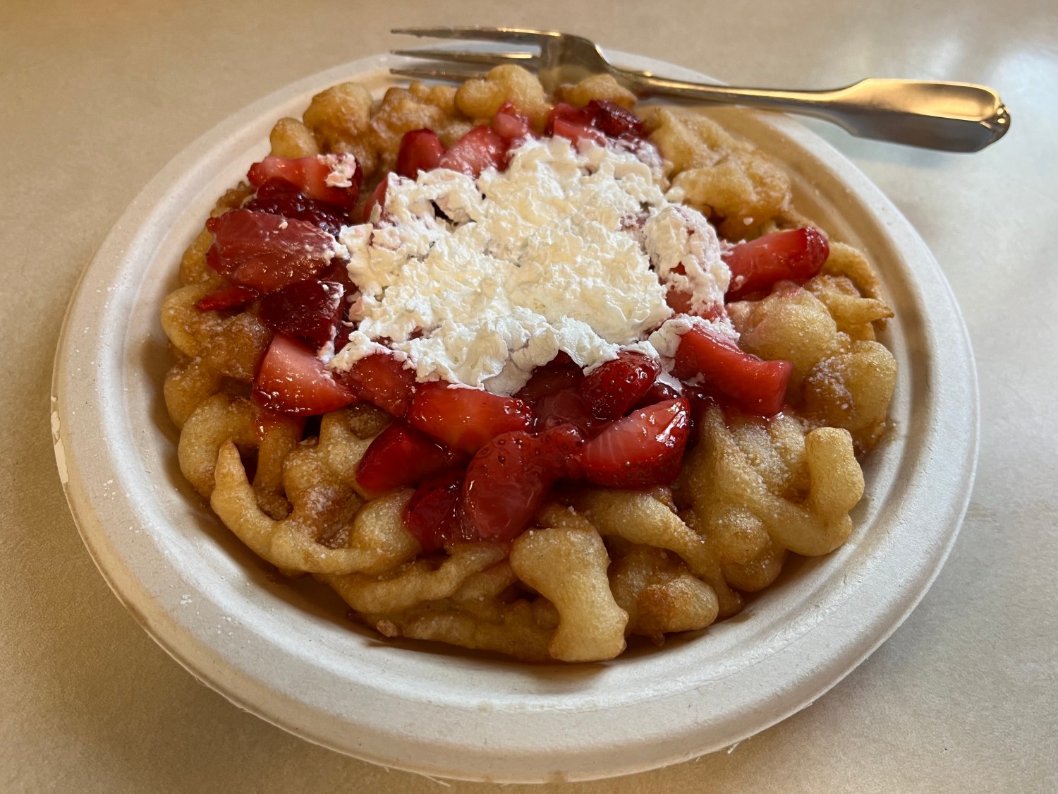 Fun at the county fair deflected unsettling thoughts as we immersed our minds into the ‘bug-tastic’ theme. Ladybugs, bees, butterflies – a terrific trio that does good for the ecosystem – deserved to be in the spotlight. A beautiful butterfly landed on my husband’s sleeve, such a remarkable moment that it brought tears of joy. And there are no words to describe what it feels like when one of these graceful insects rests on your finger. One thing for sure though, breathing is paused. Our early arrival meant a short Ferris-wheel line. Pod #1 was our ride in the sky. I held my hat for fear of the sun-protecting accessory flying into the wild blue yonder. My hair blew every which way, but miles of smiles also took flight. The views were spectacular, a painter’s masterpiece of an annual county fair with humans looking like armies of ants. Once on solid ground, the animals called. How could we not feel love? Tiny, cuddly, furry babies to ooh and ahh over. A sheep got a haircut, “baa-ing” because maybe he didn’t like the experience. But he probably felt relief in the summer sun once that thick layer of wool was removed. Dollars evaporated as we supported cool vendors. Bonsai trees received our admiration – lovely in their miniature forms, especially, two gorgeous bougainvillea. Once a year fair food entices, a savory and sweet indulgence for the palate. We even bought a funnel cake to go so that smaller portions would be possible. Just a taste is all it takes. A summer strawberry sinfully delicious delight! The sun watched over the crowd that would grow later in the day, but the golden orb complied, didn’t smother with intense heat. A little breeze shadowed us from here to there, keeping pleasant company. A margarita and rum punch hit the spot when the sun sat higher. Picnic tables with a sea of umbrellas in lime greens, petunia pinks, and turquoise invited us to sit, enjoy, and people watch. Time mystifies, because hours later, all the desired stops were checked off, so it was time to walk through the exit gate, no hand stamp. We were good for the day.