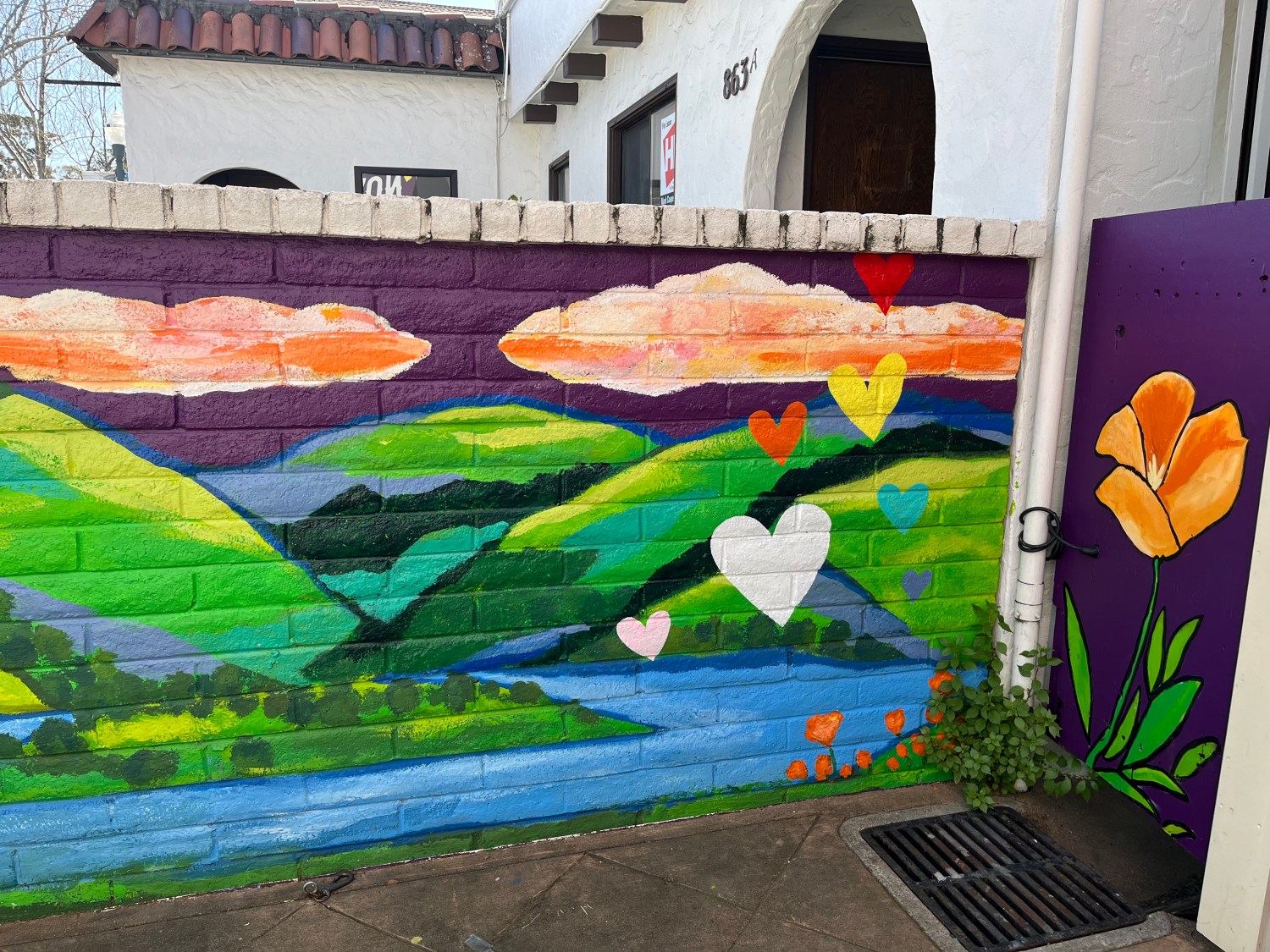 A random thought…I pass by a mural often, reminding myself that someday I should stop and get a picture. Well, that ‘someday’ came. I took this in such a hurry though that I forgot to get the artist’s name. But I love the joy of nature this artwork displays. Does this mural make you wish for spring? π»