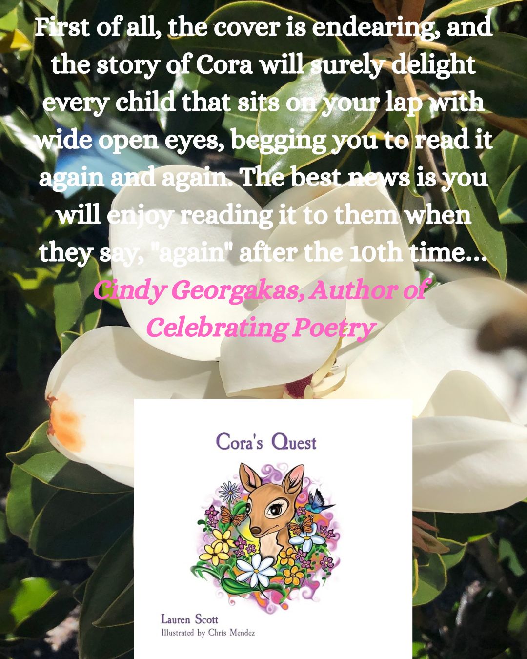Available on Amazon, and Barnes & Noble, but click on the image to purchase your copy through Amazon.And a friendly nudge to share a review online if you loved Cora’s Quest. Thanks so much! 💜
