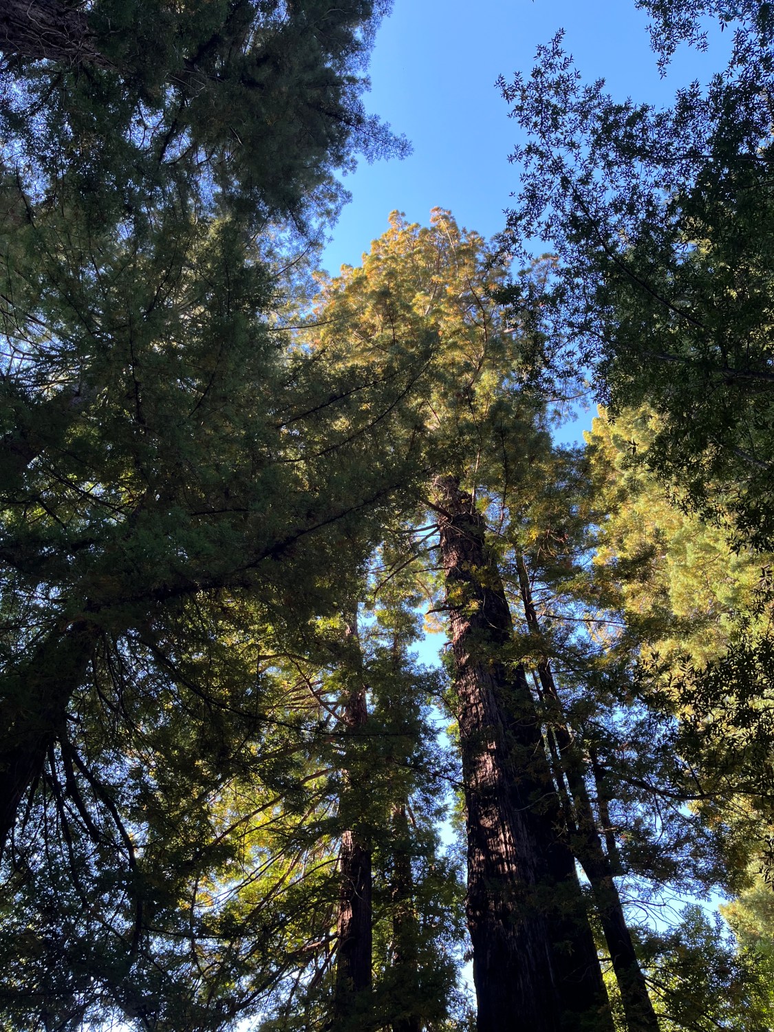 When we stroll among redwood trees, our steps slow down, we are in good company. There is no reason to rush and we won’t hesitate to hug them with open arms, because, why not? They deserve reverence for their generosity. In their company, fine fibers of peace flow through our hearts and souls, centering us. Any worries burdening our minds fall to the earth to be walked upon and buried. We listen as their leaves whisper in the breeze, Be filled with joy and do not fret, for there is no time for that nonsense.
