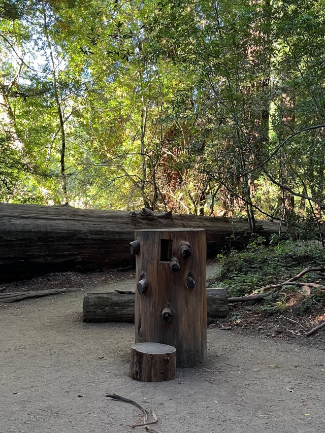 One evening before dinner, we drove to a nearby redwood grove that has been renovated. We found new grated nature trails, an obstacle course, and a small rock climbing stump for children. Only a few people were there, and among the tall giants, we felt a cool respite. A slight breeze accompanied us as we walked for almost two miles on a winding trail, and hopped along the obstacle course keeping our balance and freeing our inner child. It was really fun, breathtakingly beautiful, and calming...