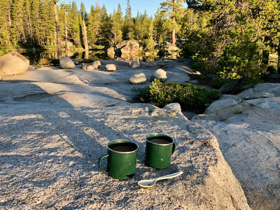Decades ago, when we began camping together, cell phones didn’t exist. Of course, nowadays cell phones may as well be another limb! And yet, when we embark into the wilderness, whether with a tent or a camper van, we look forward to unplugging. The only music we enjoy listening to are the melodies of nature: birdsong, and caws and hoots from high in the pines! We set foot on the trail, soaking in the scenery, submerging ourselves in the refreshing lake water, letting our minds engage into compelling paperbacks, while simply enjoying the quietude and each other’s company. However, cell phones come in handy for taking photos, keeping family updated, and in the event of an emergency. Luckily, an emergency didn’t occur, and we brought our Spot satellite as a backup. Smart to be prepared!