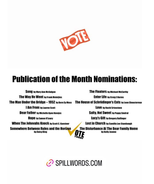 I encourage you to cast your vote for these two amazing writers at https://spillwords.com/vote/ and voting will conclude on August 29th. 🗳️
